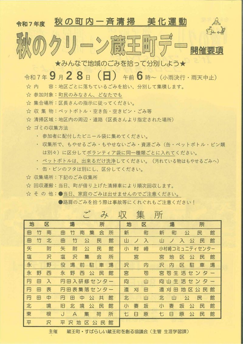 秋の町内一斉清掃美化運動『秋のクリーン蔵王町デー』