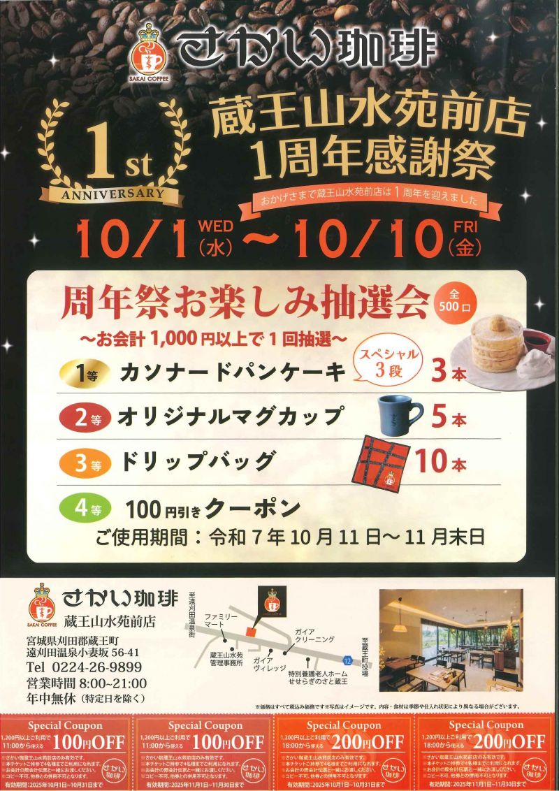 さかい珈琲 蔵王山水苑前店 1周年感謝祭