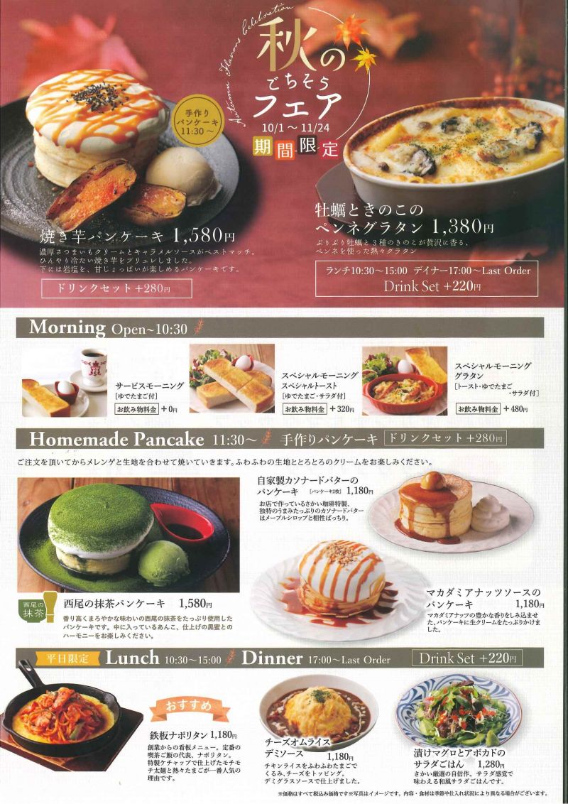 さらに、10月1日(火)〜11月24日(日)までは、秋の味覚をふんだんに使った【秋のごちそうフェア】を実施!