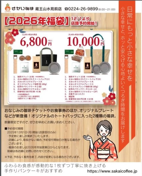また、12月1日より「2026年福袋」の店頭予約が始まりました、数量限定ですのでお早めにご予約いただきますようお願いいたします。