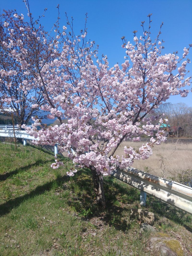 数日前に満開だった事務所前の桜は、時折風に乗って花びらが舞い、緑色の葉が目立ってきました。冬場に葉が落ちてしまった周辺の木々も、少しずつ若葉が多くなってきています。