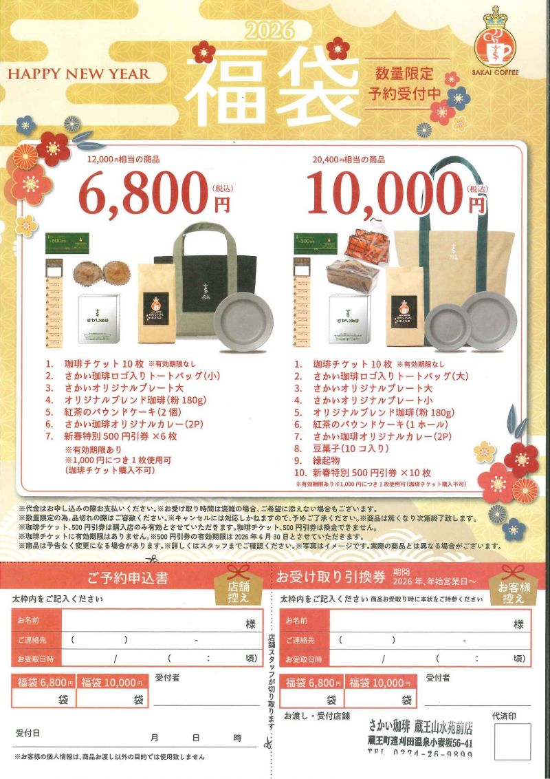 いつも「さかい珈琲 蔵王山水苑前店」をご利用いただき、ありがとうございます。